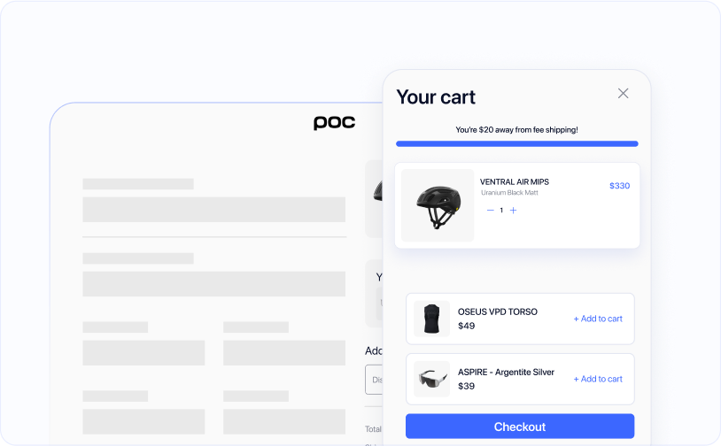 To nudge people to select one of the upsells, we’ve integrated a customizable free shipping progress bar.