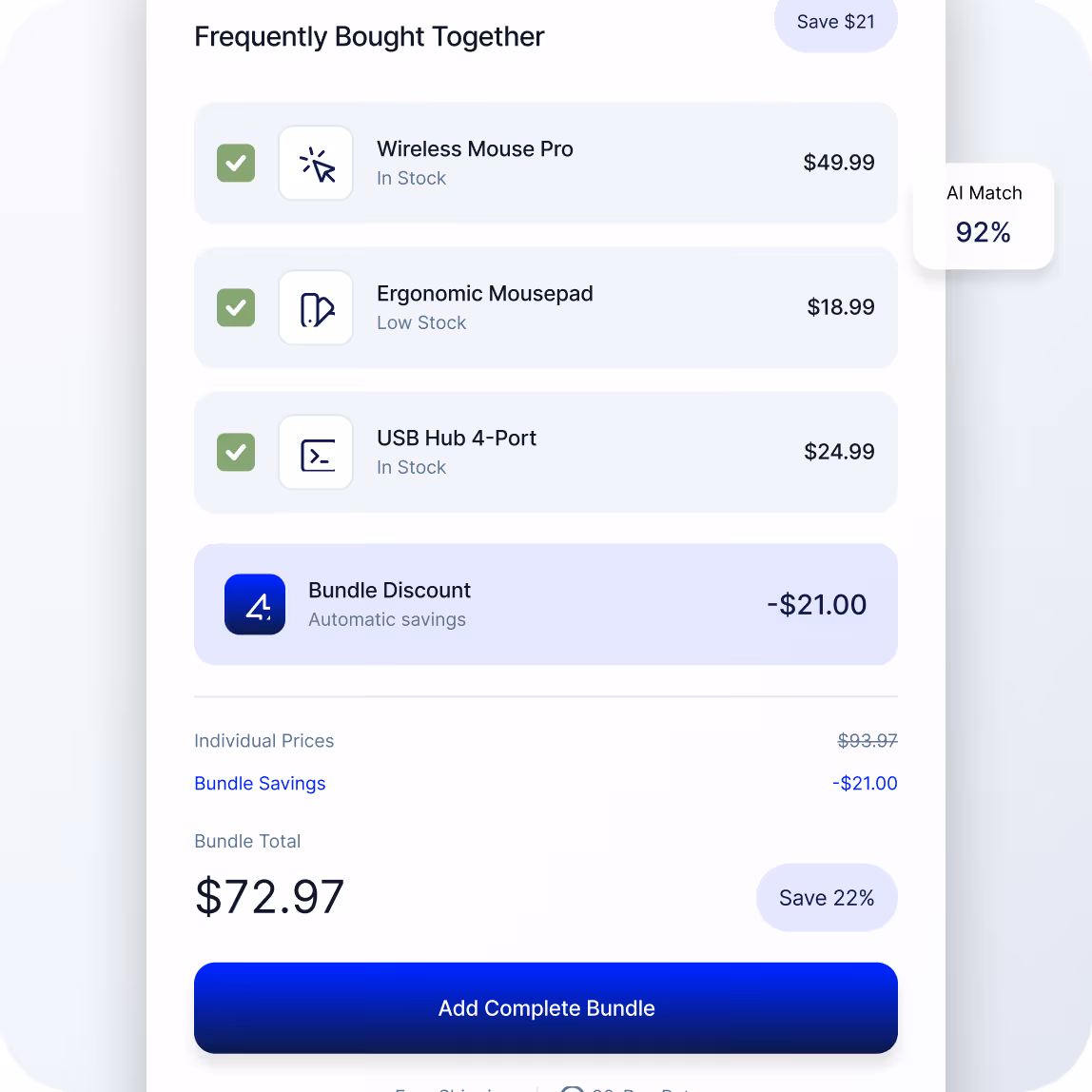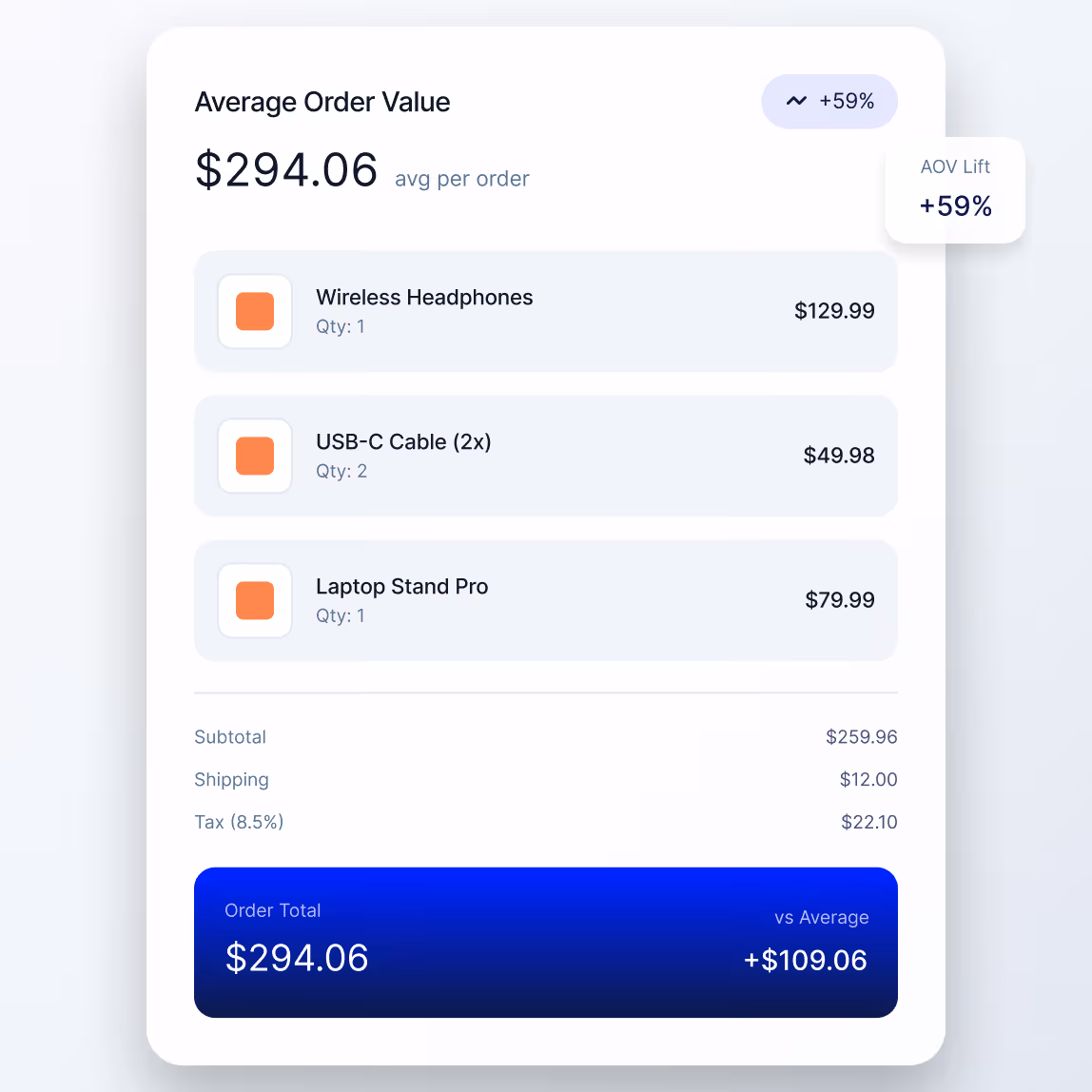Smart upsells at every touchpoint help you maximize revenue per transaction without disrupting the shopping experience.