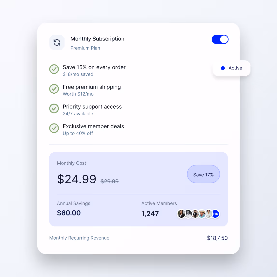 Turn one-time buyers into predictable recurring revenue. Native integrations with your subscription apps. One click Subscribe and Save.